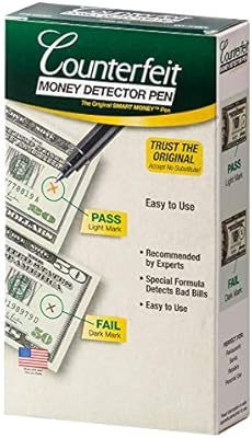 Quickly draw on a bill with the moolah counterfeit detector pen to verify. A dark mark means the bill is probably counterfeit. Package includes 3 counterfeit detection pens. Counterfeit detector pens are not guaranteed to detect all counterfeit bills. Dri mark counterfeit detector pens work on all newly designed us currency and ensure real money passes the test. Dri mark's classic forgery detection pen tests for counterfeit bills by quickly authenticating genuine banknote paper. Dri mark's counterfeit detector pen is a highly effective and inexpensive tool for detecting bad bills and deterring counterfeiters from passing phony currency in the first place.packaged quantity3 packbrand namedri markphysical characteristicscolorblackproduct. Counterfeit bills are a big deal to today's foodservice operators. An amber line indicates us currency paper, while a black line means that the bill is likely counterfeit. Just a mark on a counterfeit bill will give you an indication of the bills validity. Save money by checking and rejecting bad currency with a bill marker counterfeit marker currency pen. By using this dri mark® counterfeit bill detector pen, you will never again have to wonder about the authenticity of your cash. For two effective tests in one device, this counterfeit detector pen combines a powerful uv led light with the dependable dri mark counterfeit detector pen for dual protection against counterfeit u.s.