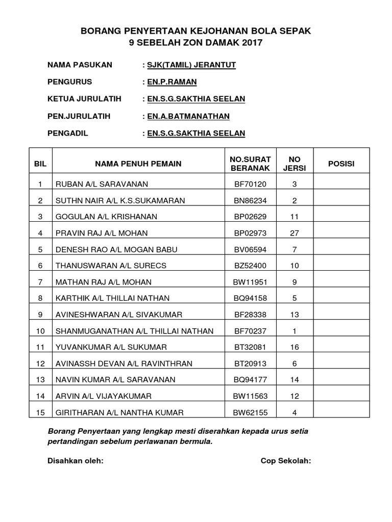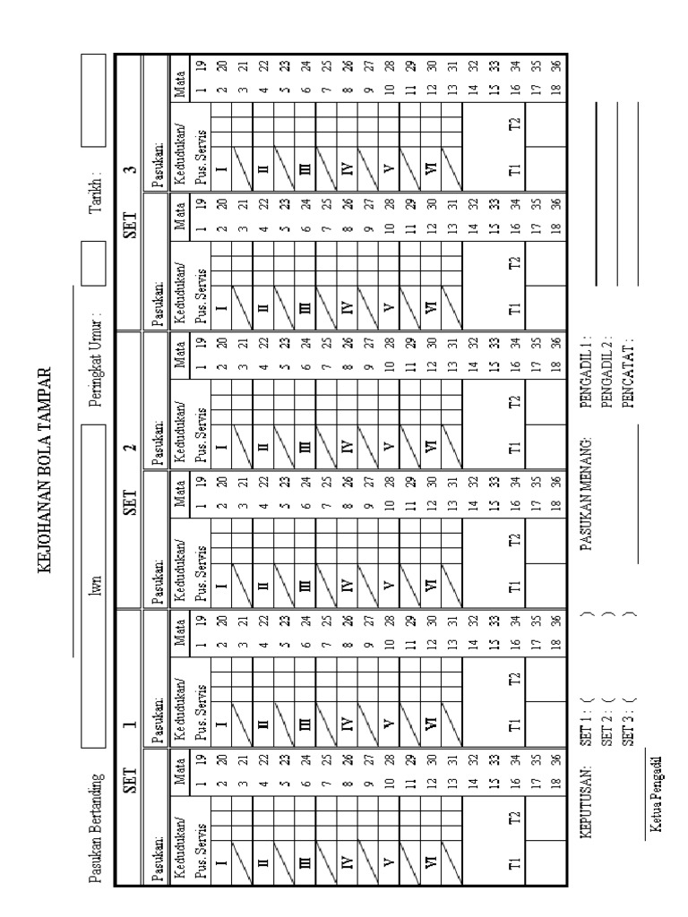 BORANG HAKIM from imgv2-1-f.scribdassets.com Pgsr pendidikan jasmani ipik contoh borang pegawai meja. Hasil bola di bawah ini di urutkan berdasarkan tanggaldan di update setiap hari beberapa saat. Bola tampar pelawan 2 gabungan saripul kg bahagia.julmin.sarip vs hasim cun2 yahya mengkalinau. Terdapat dua kaedah pemarkahan yang digunakan untuk bola tampar. Borang skor bola tampar kanival sukan 2011. Mengakhiri cabaran bola tampar mssd segamat 2015 dengan menduduki tempat ke tiga untuk pasukan smk pemanis. Setiap kali pasukan memperoleh satu mata, pasukan penjaring menerima bola untuk diservis. Fasilitas yang lengkap tentunya menjadi sesuatu hal yang kita inginkan ketika bermain bersama agen bola online.
