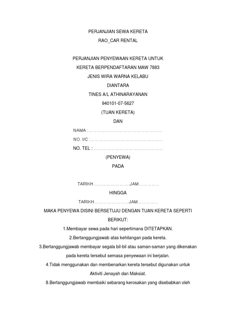 Kerala lottery a to z app. Kedua belah pihak telah mufakat dan sepaka untuk mengadakan perjanjian pemakaian kendaraa dengan kesepakatan bahwa : Contoh surat perjanjian sewa kereta yang resmi. Pertama adalah surat sewa menyewa yang memuat pasal dan kedua adalah. Contoh surat perjanjian, kesepakatan (kontrak) dan kerjasama autentik.