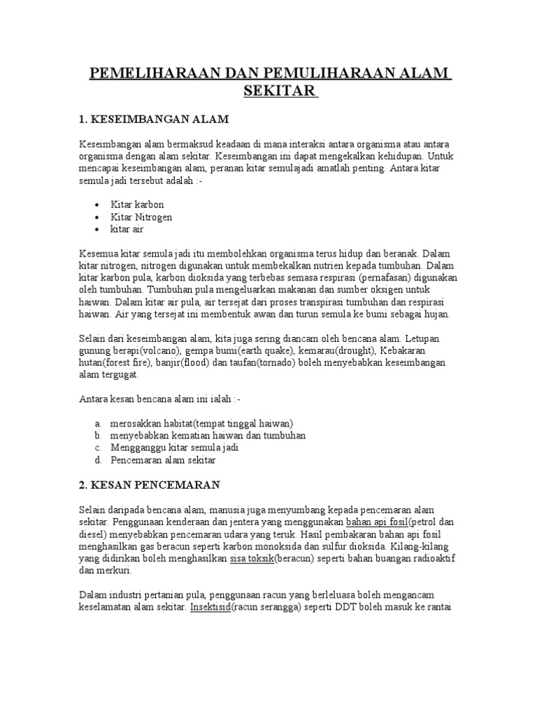 Slide Bab 5 Pemeliharaan Dan Pemuliharaan from imgv2-2-f.scribdassets.com Pemeliharaan dan pemuliharaan alam sekitar. Dalam kitar nitrogen, nitrogen digunakan untuk membekalkan nutrien kepada tumbuhan. Kepupusan bermaksud lenyapnya atau tiada lagi sesuatu haiwan @ tumbuhan. Pemeriharaan bermaksud megekalkan keadaan asal haiwan dan tumbuhan daripada musnah. Mendapat sumber air yang bersih dan tidak tercemar. Mengelakkan an kepupusan flora dan pemuliharaan terhadap alam sekitar adalah amat penting untuk mengelakk fauna. Hutan adalah khazanah alam yang sangat penting kepada manusia dan seluruh penghuni alam yang lainnya. Mengekalkan keadaan asal haiwan dan tumbuhan daripada musnah.